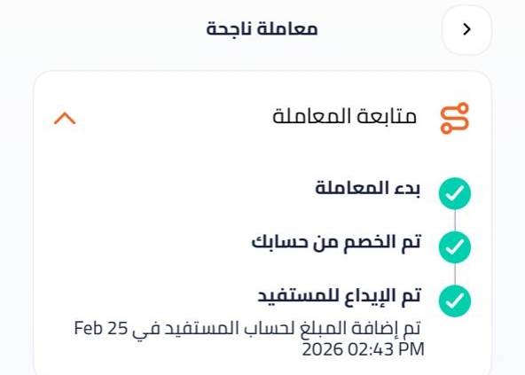 - إمكانية تتبع جميع التحويلات سواء كانت مقبولة أو قيد التنفيذ أو مرفوضة ومعرفة رصيد جميع الحسابات البنكية بسهولة والإطلاع على كشف حساب مختصر لآخر التعاملات.