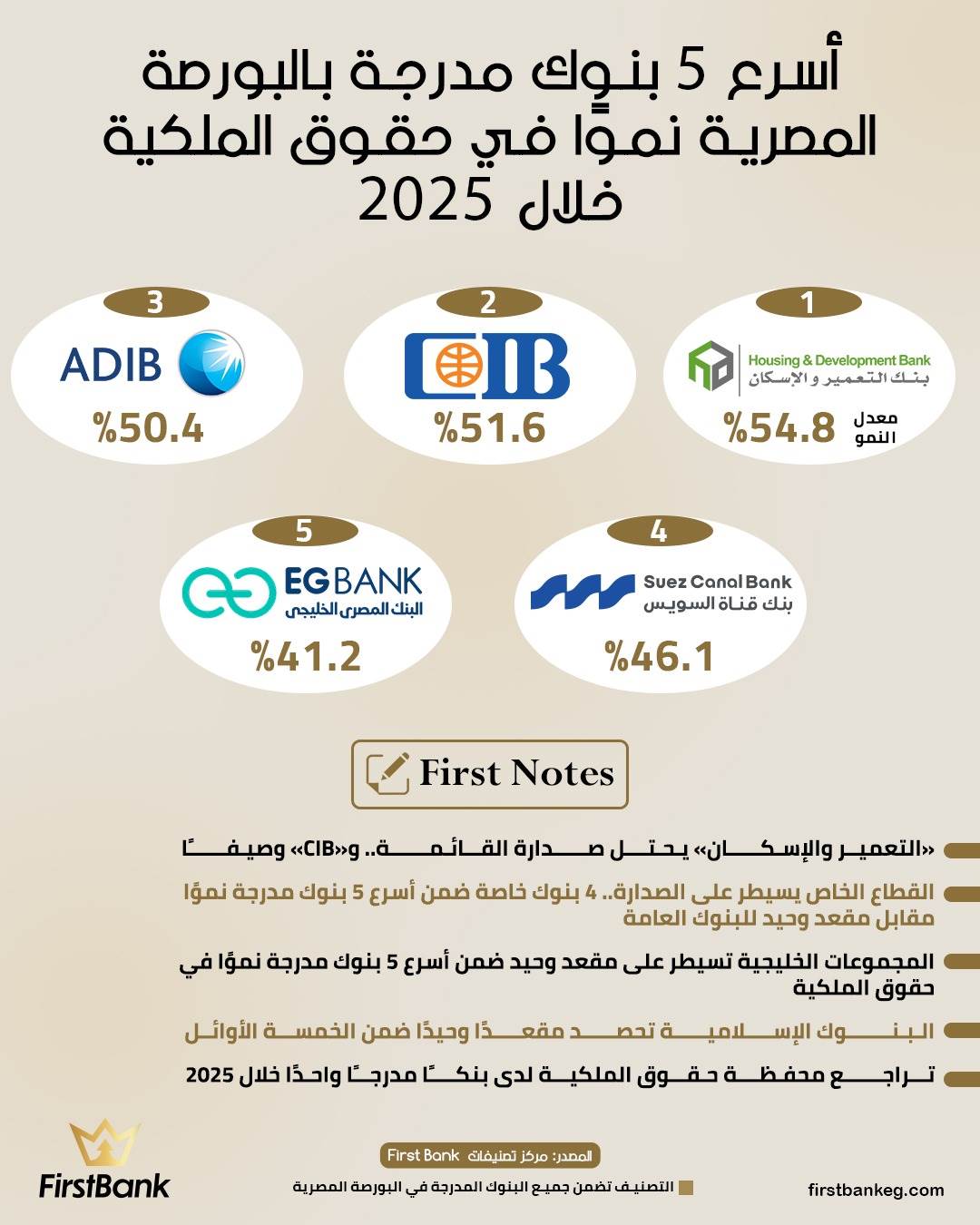 42591 /42591 أسرع 5 بنوك مدرجة بالبورصة المصرية نموًا في حقوق الملكية خلال 2025 First Bank 03:18 م - الخميس 26 فبراير 2026 شارك شارك