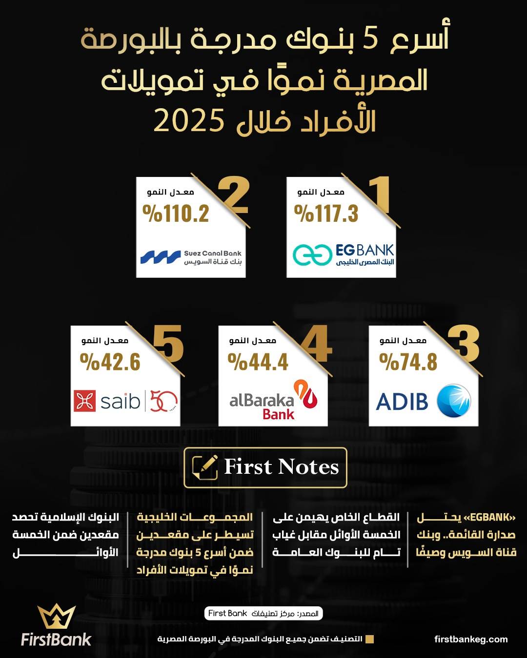 42628 /42628 أسرع 5 بنوك مدرجة بالبورصة المصرية نمواً في تمويلات الأفراد خلال 2025 مركز تصنيفات first bank 01:30 م - الأحد 1 مارس 2026 شارك شارك