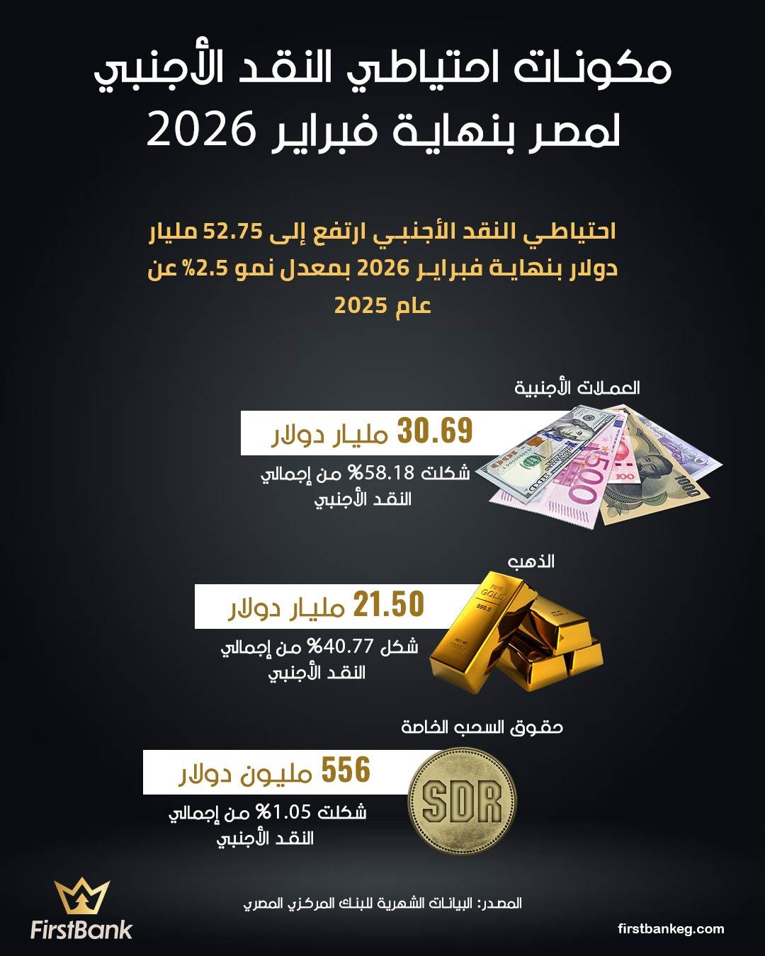 42734 /42734 مكونات احتياطي النقد الأجنبي لمصر بنهاية فبراير 2026 02:48 م - الأربعاء 4 مارس 2026 شارك شارك احتياطي النقد الأجنبي مكونات احتياطي النقد الأجنبي لمصر