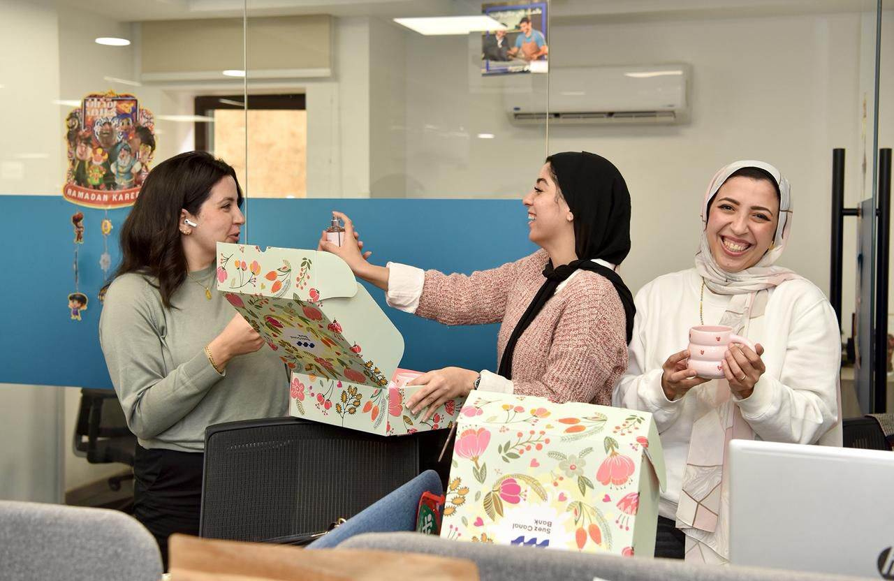 وفي السياق ذاته، تم توزيع هدية تذكارية خاصة احتفالاً بشهر المرأة، حيث تسلمت كل موظفة علبة من منتجات العناية بالبشرة مع مج مصنوع يدويًا، من شركة مصرية تقودها رائدات أعمال شابات، ويشكل العنصر النسائي فيها أكثر من 85% من فريق العمل، وذلك في ضوء مواصلة بنك قناة السويس دوره في تمكين المرأة اقتصاديًا، ورافقت الهدية رسالة تحفيزية للموظفات تعبيرًا عن الامتنان لدورهن وجهودهن المتواصلة في المنزل والعمل.
