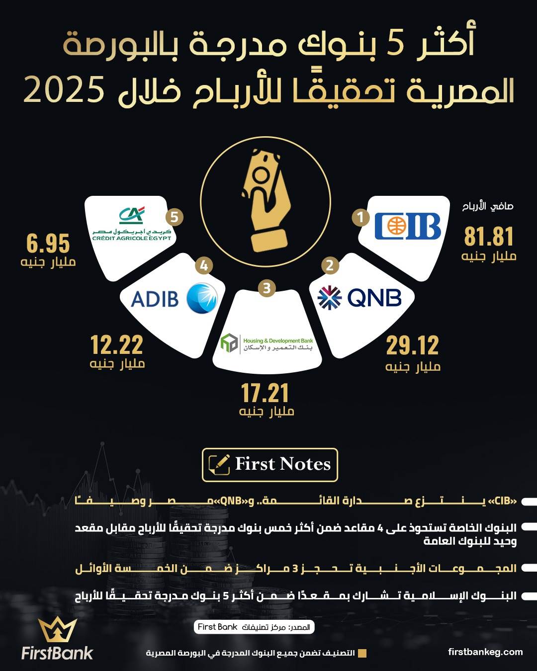 43215 /43215 أكثر 5 بنوك مدرجة بالبورصة المصرية تحقيقاً للأرباح خلال 2025 مركز تصنيفات First Bank 03:00 م - الأحد 29 مارس 2026 شارك شارك