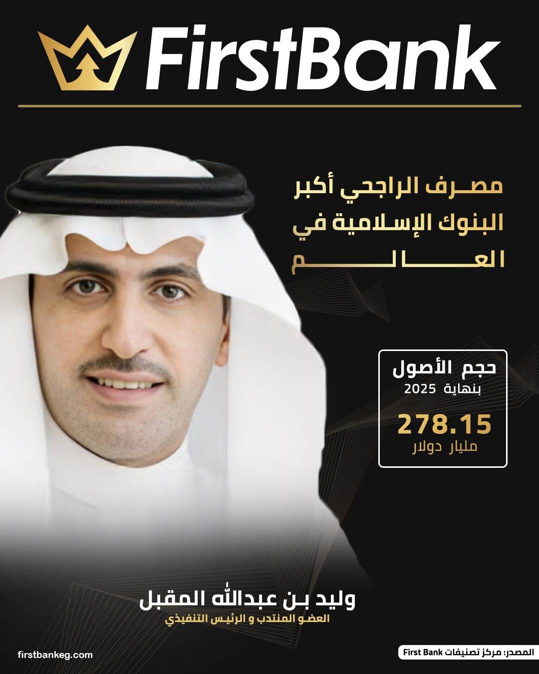 كشفت أحدث تصنيفات «First Bank»، عن تصدر مصرف الراجحي قائمة أكبر 20 بنك إسلامي في العالم بنهاية 2025.