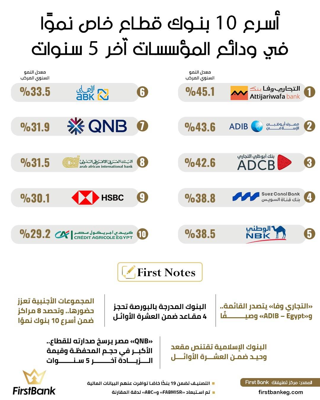 43574 /43574 أسرع 10 بنوك قطاع خاص نمواً في ودائع المؤسسات آخر 5 سنوات مركز تصنيفات First Bank 04:09 م - الثلاثاء 14 أبريل 2026 شارك شارك