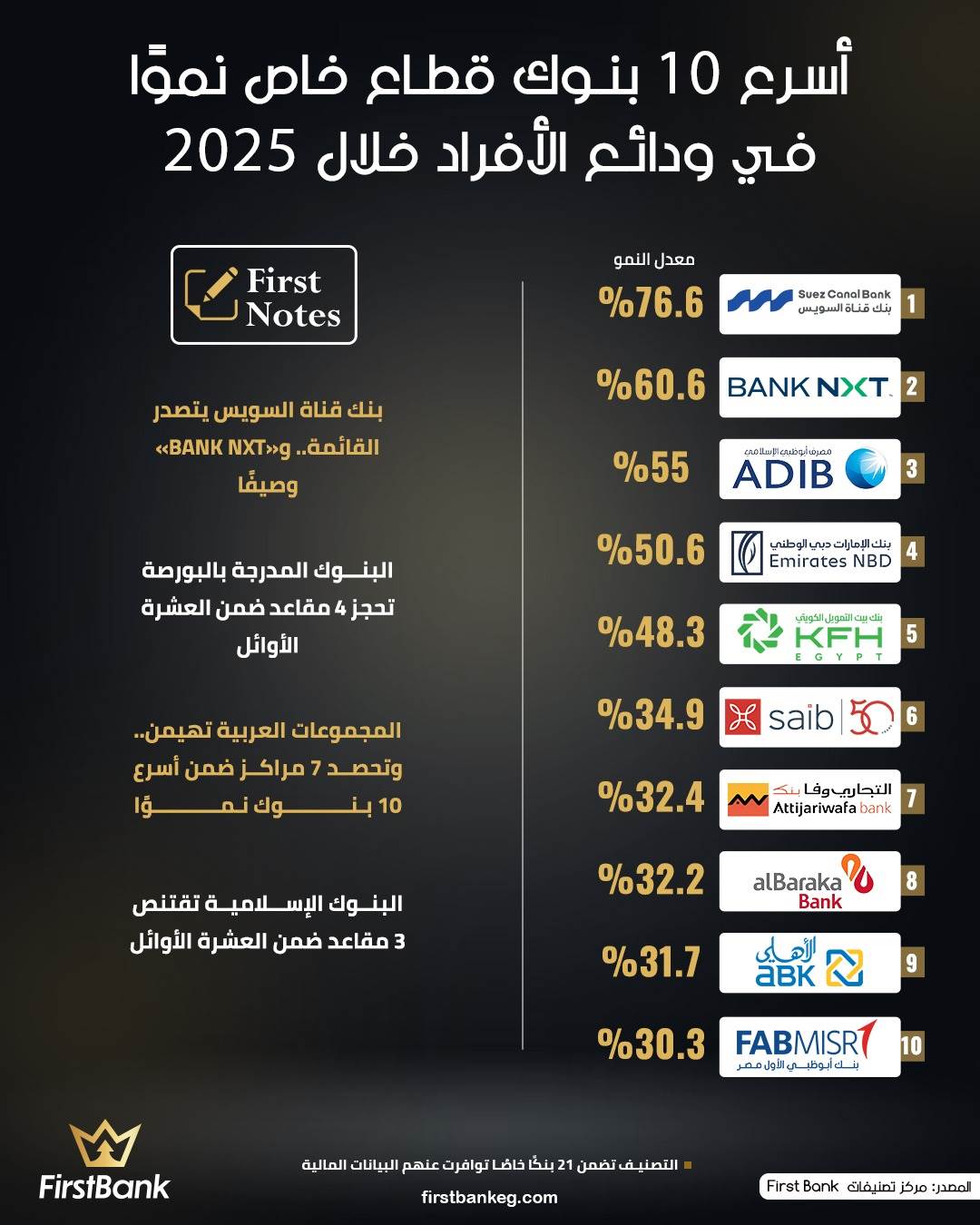43627 /43627 أسرع 10 بنوك قطاع خاص نمواً في ودائع الأفراد خلال 2025 مركز تصنيفات First Bank 02:05 م - الخميس 16 أبريل 2026 شارك شارك