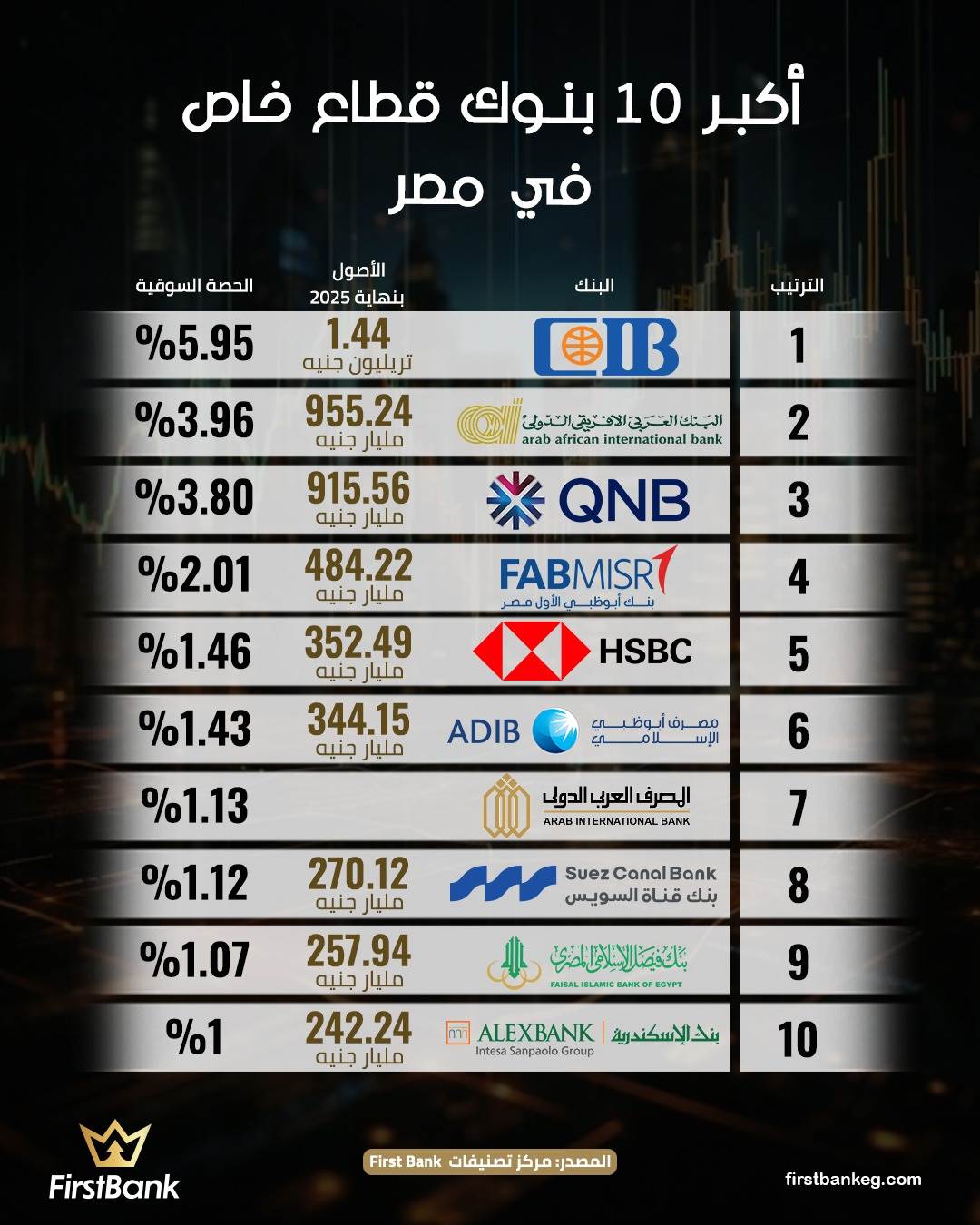 «First Bank» يرصد.. أكبر 10 بنوك قطاع خاص في مصر