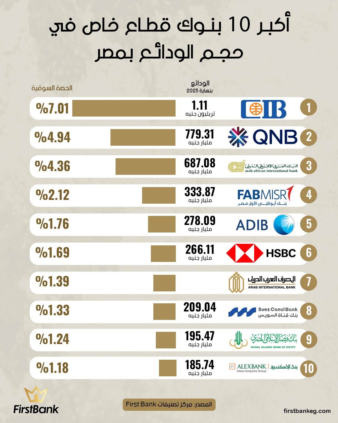 «First Bank» يرصد.. أكبر 10 بنوك قطاع خاص في حجم الودائع بمصر