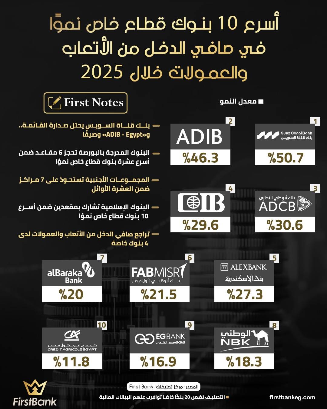 43757 /43757 أسرع 10 بنوك قطاع خاص نمواً في صافى الدخل من الأتعاب والعمولات خلال 2025 مركز تصنيفات First Bank 01:34 م - الأربعاء 22 أبريل 2026 شارك شارك
